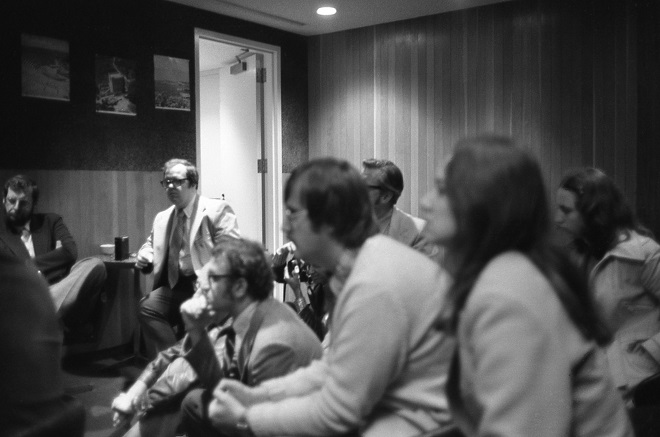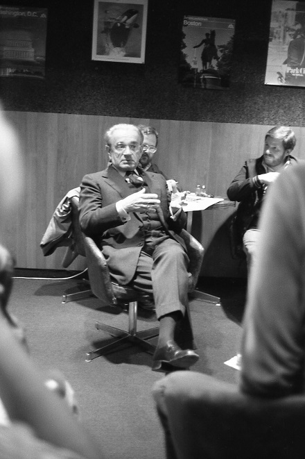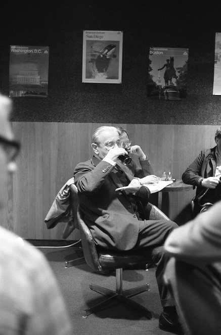 ▩ Rózsa sips a drink during Q&A session after showing of The Lost Weekend.