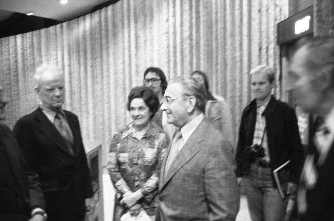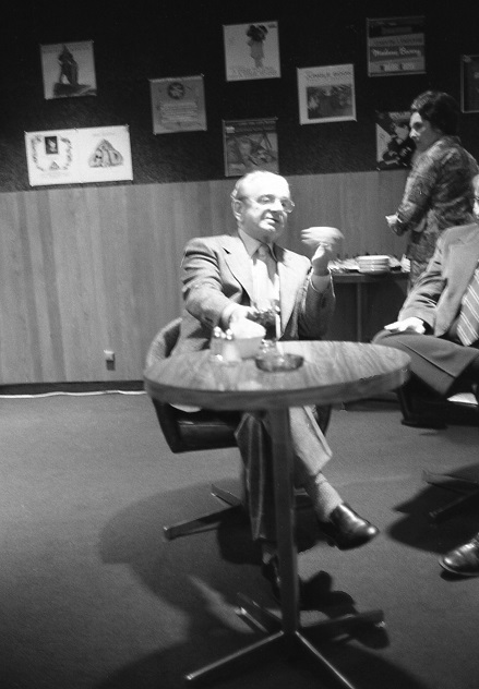 ▩ Rózsa at an informal gathering before the showing of El Cid (note soundtrack from the film on the wall behind him).