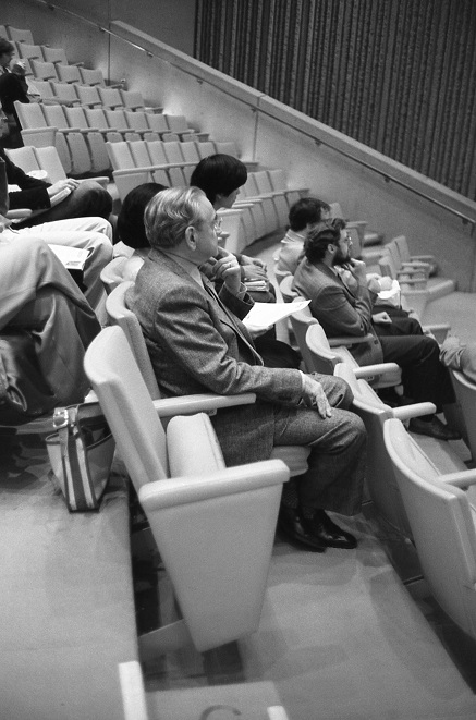 ▩ Rózsa seated in the Ontario Film Theatre. After taking this photo, I went over and introduced myself, saying, "I'm the only 'Q' in the Miklós Rózsa Society." He drolly replied, "We definitely need more 'Q's."