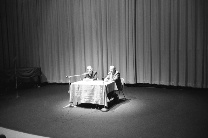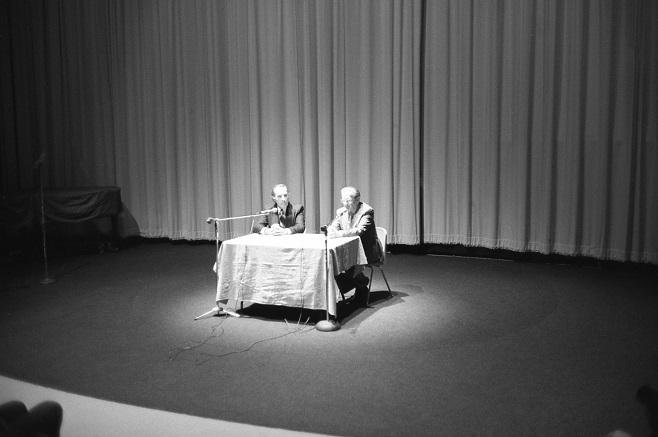 ▩ Gerald Pratley and Rózsa take questions from the audience after the showing of El Cid.