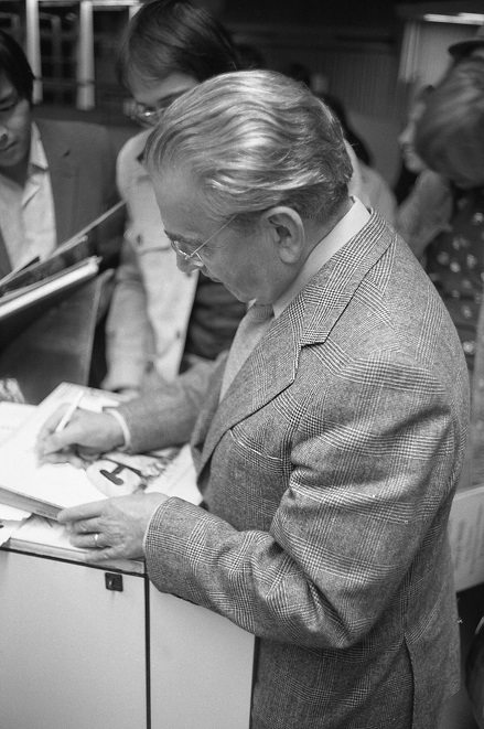 ▩ Rózsa talks to fans. On the right: Charles Rileigh.