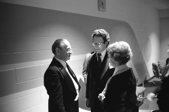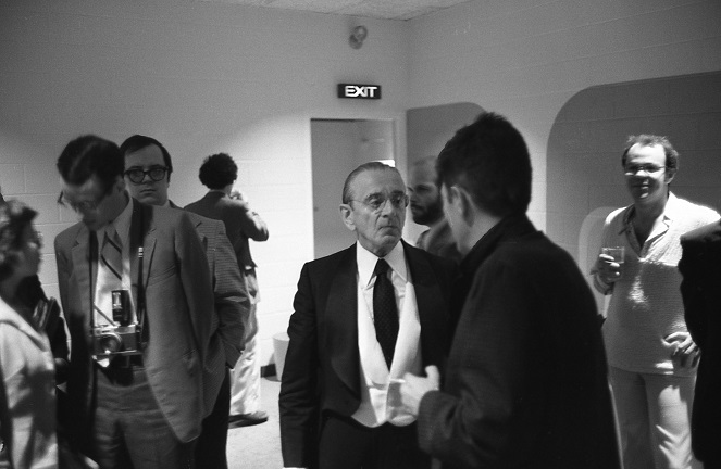 ▩ Rózsa talks to Boris Brott, conductor of the Hamilton Philharmonic Orchestra (and advocate of Rózsa's music) and unidentified woman.