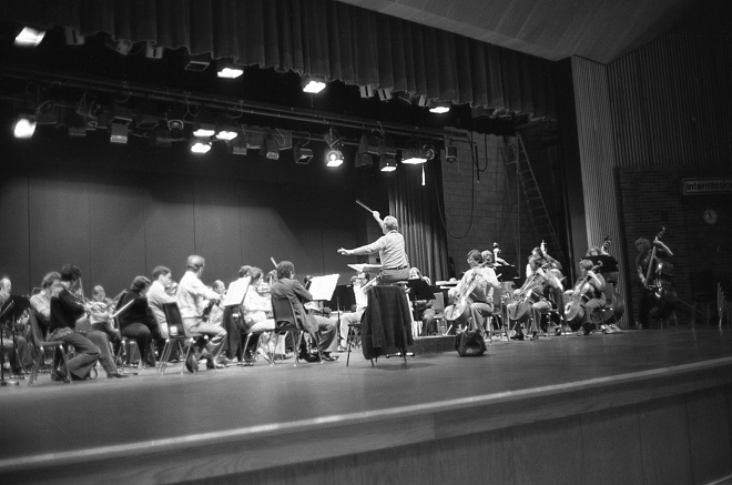 ▩ Rózsa rehearses the Hamilton Philharmonic Orchestra.