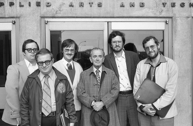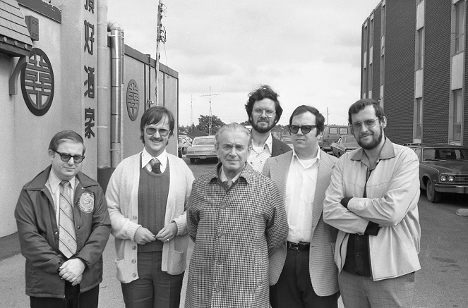 ▩ After lunch with Rózsa (he paid!). From left: Charles Rileigh, George Komar, Rózsa, Mike Quigley, Mark Koldys, Alan Hamer.